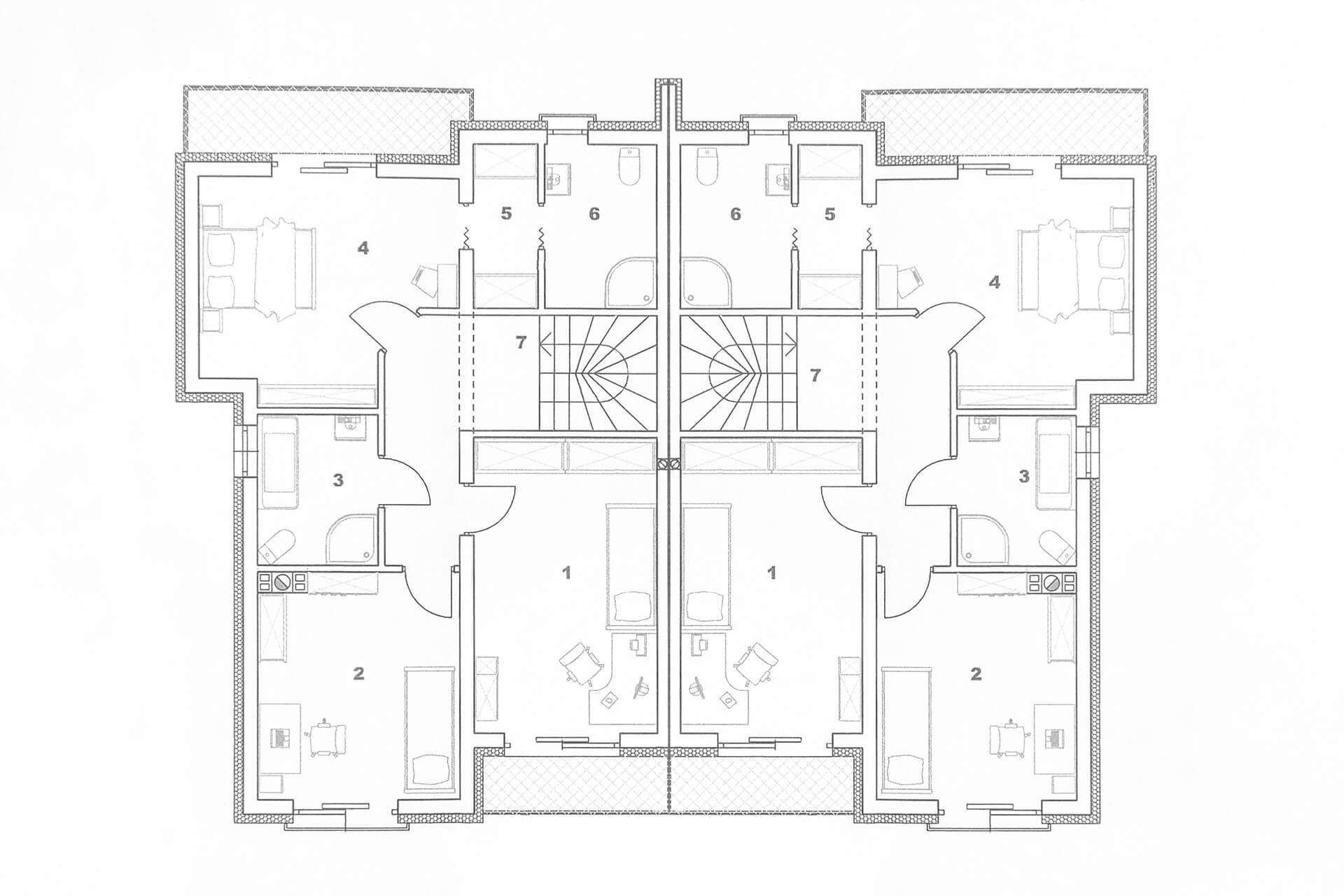 W ramach II etapu w stanie surowym zamkniętym są dwa budynki mieszkalne w zabudowie bliźniaczej.